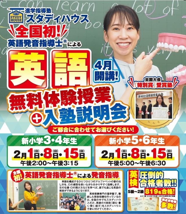¡Ú¾®³ØÀ¸±Ñ¸ì¡Û¡ù£²·î¤Î̵ÎÁÂθ³¼ø¶È¡ù¼õÉÕÃæ¡ª ¥¹¥¿¥Ç¥£¥Ï¥¦¥¹¤Ç¤Ï£´·î¤«¤é¡¢¾®³ØÀ¸ÂоݡֱѸì¡×¿·¥¯¥é¥¹¤¬³«¹Ö¤È¤Ê¤ê¤Þ¤¹¡£
